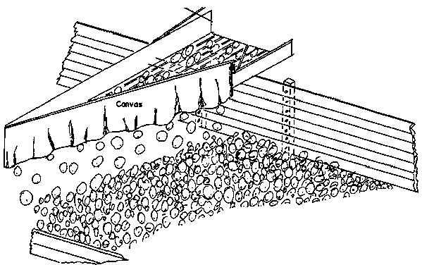 The canvas curtain illustrated below is used to break the fall of fruit moving from a conveyor into a bulk bin.