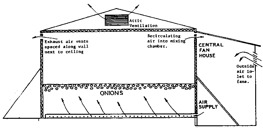 Certain commodities, such as onions and garlic, store better in lower relative humidity environments. Curing these crops and allowing the external layers of tissue to dry out prior to handling and storage helps to protect them from further water loss.