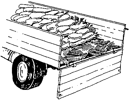 Bulk loads of produce should be carefully loaded so as not to cause mechanical damage. Vehicles can be padded or lined with a thick layer of straw. Woven mats or sacks can be used in the beds of small vehicles. Other loads should not be placed on top of the bulk commodity.