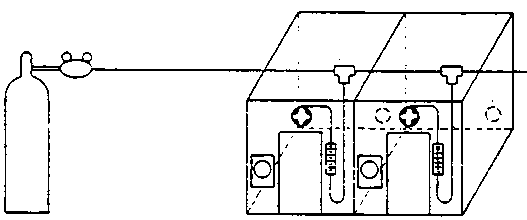 Flowmeters can be located in one place for ease of monitoring, or can be strung out in a line. Locating all the flowmeters in one place requires the use of more tubing than if flowmeters are located in each ripening room. For more information and details on how to set up a flow through system for ripening fruit, see Sherman and Gull (1981).