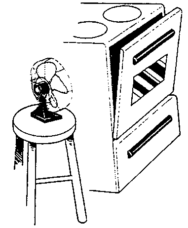 A simple electric dehydrator can be constructed using plywood, sheet metal a small fan, five household lightbulbs with porcelain mounting fixtures and some screening material. The drier shown below is 32 inches long by 21 inches wide and 30 inches high, and contains racks for five trays. The fan and the sheet metal lining the bottom compartment help conduct heat upward through the box.