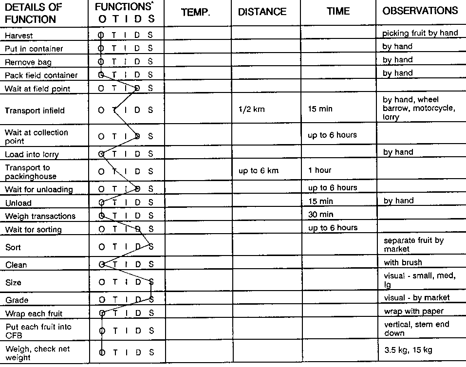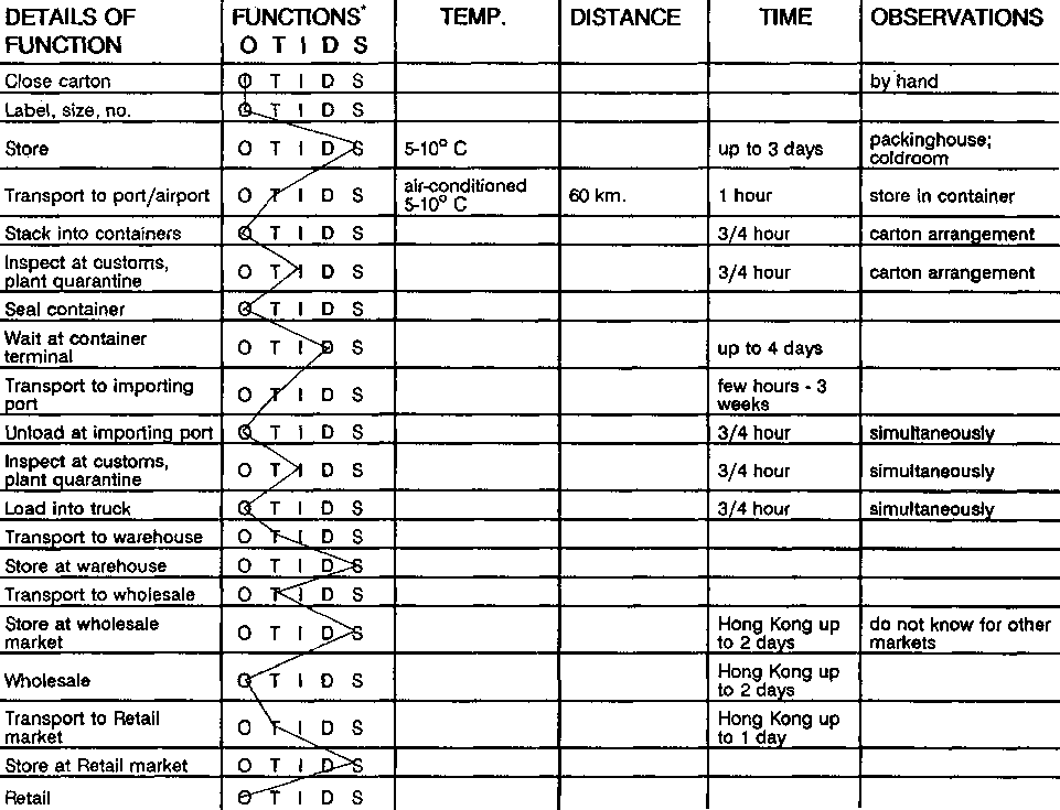 Flow diagram of actions taken in the postharvest system for starfruit, Malaysia, 1988