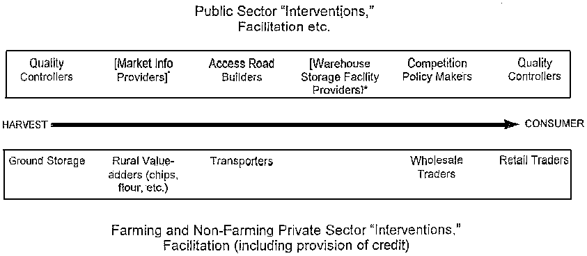 It attempts to do justice to the systems view of the post-harvest complex of issues. Specifically, it distinguishes among three permanent actor-groups that are involved in this transaction system. These are: