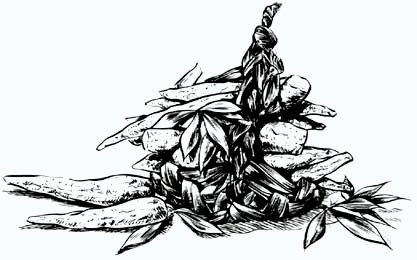 The cassava root is not as nutritious as taro yam, sweet potato, bananas or breadfruit, but it does have some nutritional value. It contains a lot of carbohydrate which can provide the body with energy. It is a good source of Vitamin C, potassium and dietary fibre. The body needs energy for warmth, work and play. Vitamin C keeps body tissues strong, helps the body use iron, and helps wounds heal and fights infections. Potassium helps in maintaining a good balance of bodily fluids in the blood. Dietary fibre prevents constipation by helping the body to have regular bowel movements. It also tends to lower cholesterol levels in the blood and helps prevent heart diseases.