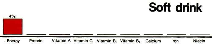 The bar graphs show that coconut drinks are more nutritious than soft drinks. Soft drinks are usually only sugar, colouring, and water, and they are expensive. They provide little food value for the amount of money spent. Drinking green coconuts or toddy is best for Pacific people, because they are inexpensive and contain other nutrients in addition to energy.