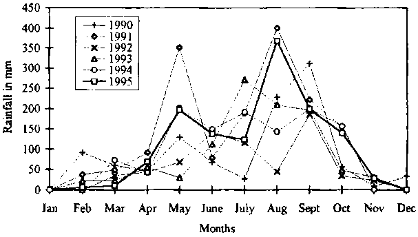 Table 4: Long-term annual precipitation at location Tamale, from 1990 -1995