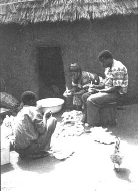 A general survey (Mofa-GTZ, 1994) carried out before the loss-assessment study was intended to facilitate post-harvest information gathering as well as field work planning. Questionnaires were pre-tested and modified according to the suggestions of farmers groups, extension staff and GTZ staff. The questionnaire included both a standardised form and open-ended questions encouraging more detailed response from the farmers. After pre-testing the draft, the questionnaire was administered to 150 farm households in the vicinity of the three districts in the Northern Region in order to obtain basic data on the farm-household environment and, especially, on storage systems of cassava. The sample size and area of choice were selected on the basis of logistics, personnel and financial limits. To overcome the language barrier, questions were translated into the common languages with the assistance of enumerators (see Appendix I). The main areas highlighted were: