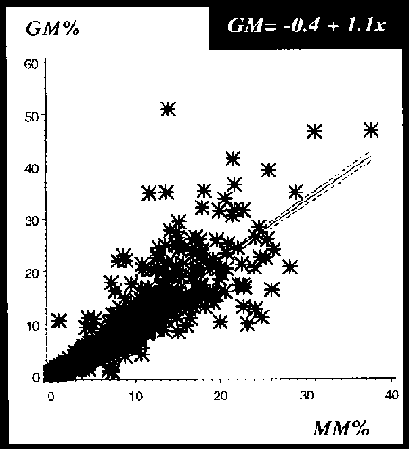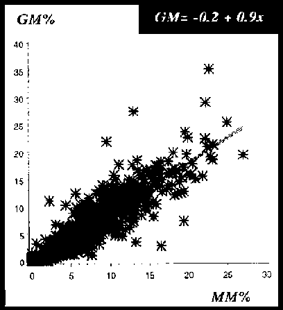 Table 13: Comparison of weight losses (%) assessed with the GM and VGM, 8-month storage period farm study, 1995 (n = 2460 chips)