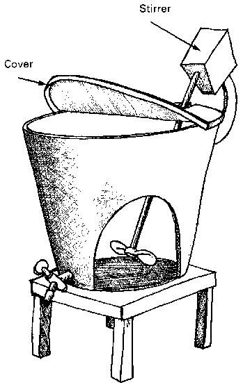 Most beverages are thin liquids and can be filled quite easily by hand, but this is often too slow for a small business. A simple filler can be made by fitting one or more taps to the base of a bucket (see diagram below).