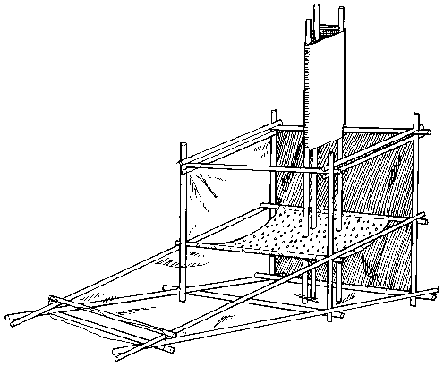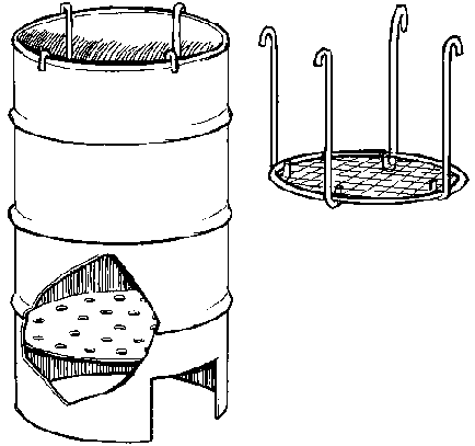 Figure 3 illustrates an artificially-heated tray dryer. When rain threatens, the trays, which were previously placed in the sun to dry, are assembled on top of each other over a simple heating compartment. A roof and chimney are placed on top, and drying continues by direct heating.