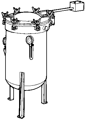 This is a horizontal rotary-type washer for N-cans. The machine is capable of handling cans of sizes N 1-10. Cans are either washed by jets of water or sterilized by steam.