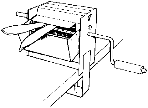 This machine comprises a soaking tank made from galvanized iron. There is a 0.19kW (0.25hp) motor which turns brushes at 540rpm and a drain lock is provided for rinsing purposes.