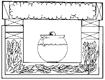 Oil-yielding fruit (e.g. palm fruit) is placed on top of a perforated base to separate it from the cooking water. A funnel allows control of the water level.