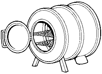 This cooks food under pressure of 103 kPa (15psi). It has a vapour valve, steam trap, a filter and a security valve. Capacity: 91 litres.