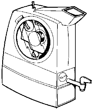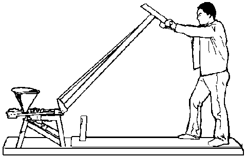 This prototype model uses a centrifugal blower fan to separate the grain from the chaff. The improved model works at about 99% winnowing efficiency. An integral motor is included and the machine is freestanding. Throughput: 466kg per hour.