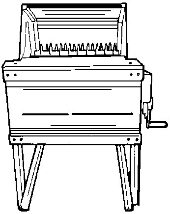 Designed for paddy, this is a compact freestanding model, fabricated from mild steel and operated by cranking a handle, which is connected by pulley and V-belt to the fan.