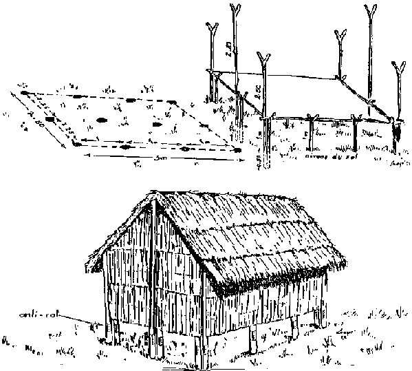 Figure 4.3 A rodent-proof yam barn (Knoth 1993)