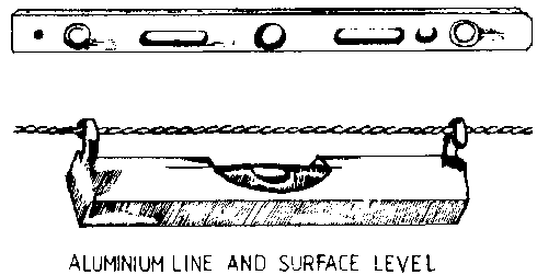 On a small building site it may be possible to use a long straightedge with a spirit level to get the sight rails level. However, with longer excavations or where a gradient is required, it may be necessary to use a tape and level to get the appropriate fall from one sight rail to another.