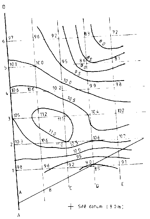 From the spot levels obtained by this grid method, the contours can be drawn, the volume of earth to be excavated can be calculated and the average level of the grid can be determined.