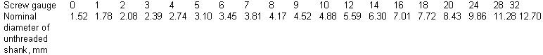Table 3.19 Conversion of Screw Gauge to Millimetres