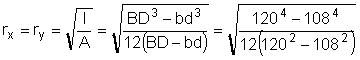 r = radius of gyration (r = I / A)