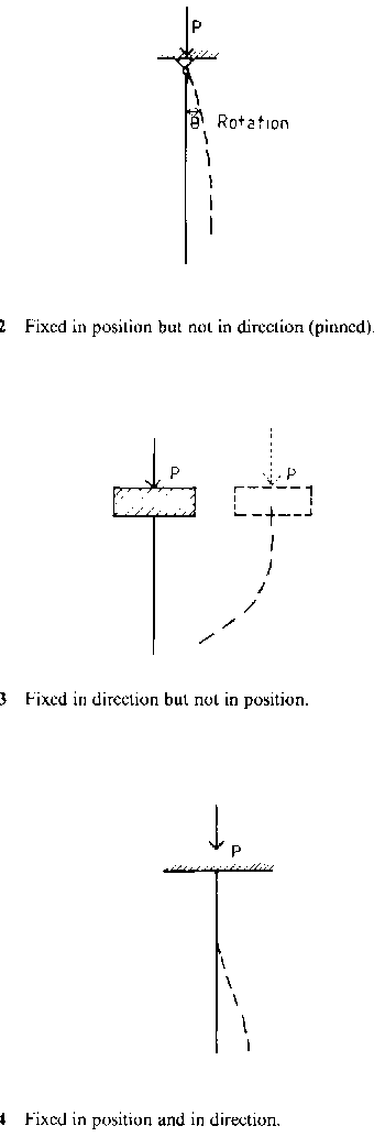 3. The leg of a frame, which is pinned to the foundation has the effective length 1 = 2 L, but if the top is effectively secured for sideways movement, the effective length is reduced to 1 = L.
