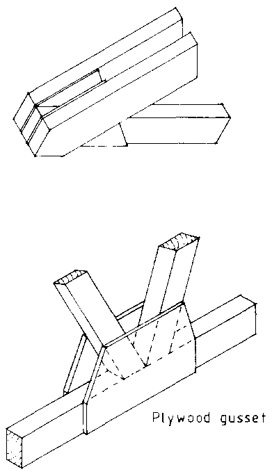 Glued joints are more often used when trusses are prefabricated because control over temperature, joint fit and clamping pressure is essential. For home use glue is of the used together with nail joints.