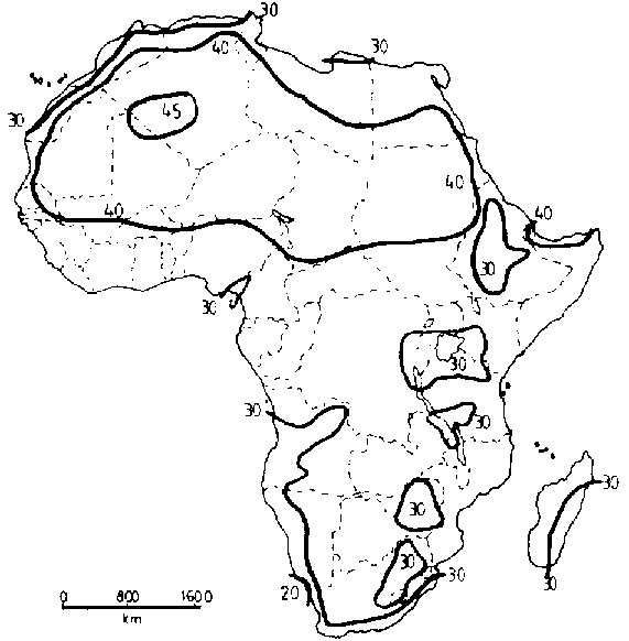 The following brief discussion of Africa's climatic zones is general and can be found worldwide in the tropics. It illustrates the wide variety of situations with which engineers are faced in designing environmentally suitable buildings for people, animals and products.