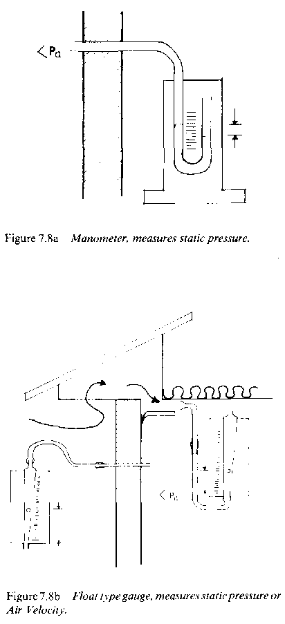 Figure 7.8 Simple Instruments to measure pressure and air velocity.