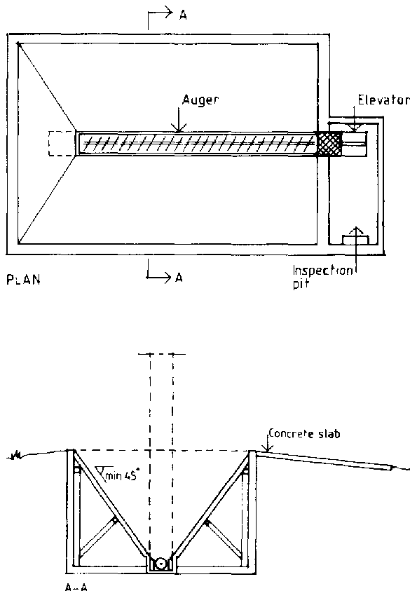 A concrete wood or steel-lined pit with an inverted pyramid or V-shaped bottom is built in the ground, see figure 9.29.