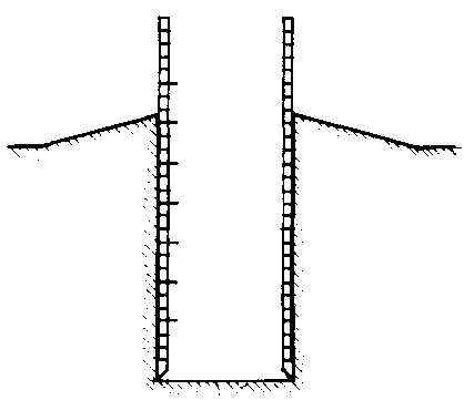 With either type of casing, by digging soil out from under the bottom of the casing, the whole structure will be allowed to settle. When the top of the well casing has reached the surface of the surrounding soil another section is added to the top. Thereafter digging is repeated until another section can be added on to the well at ground level, and so on until a satisfactory depth has been reached. The blocks must be tied together with vertical reinforcing rods to ensure that the casing sinks as a single unit.