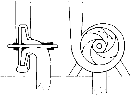There are several designs of centrifugal pumps that further influence one's choice. The impeller may be an open type with a relatively large clearance between it and the casing or it may be a closed type with very close clearances. The open type will tolerate sand or silt in the water much better than the closed-impeller type. (Figure 14.14 and 14.15).