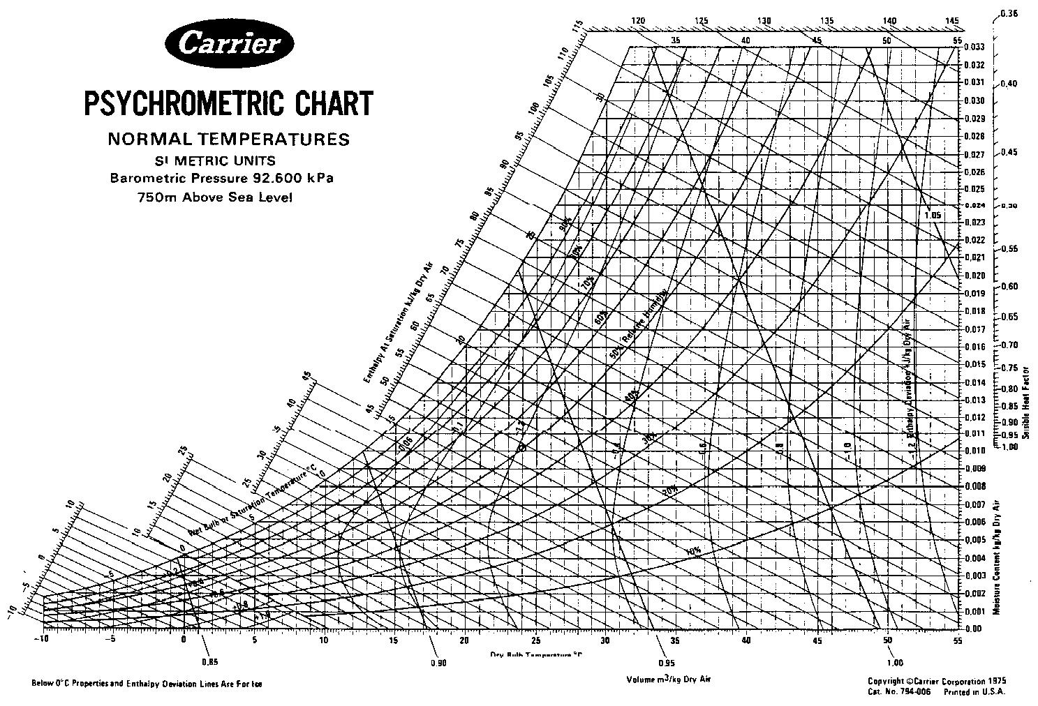 PSYCHROMETRIC CHART NORMAL TEMPERATURES Sl METRIC UNITS Barometric Pressure 92.600 kPa 750m Above Sea Level
