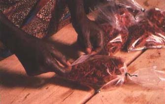 94. The bags of dried tomatoes are kept in cardboard boxes with straw to protect them from damp.