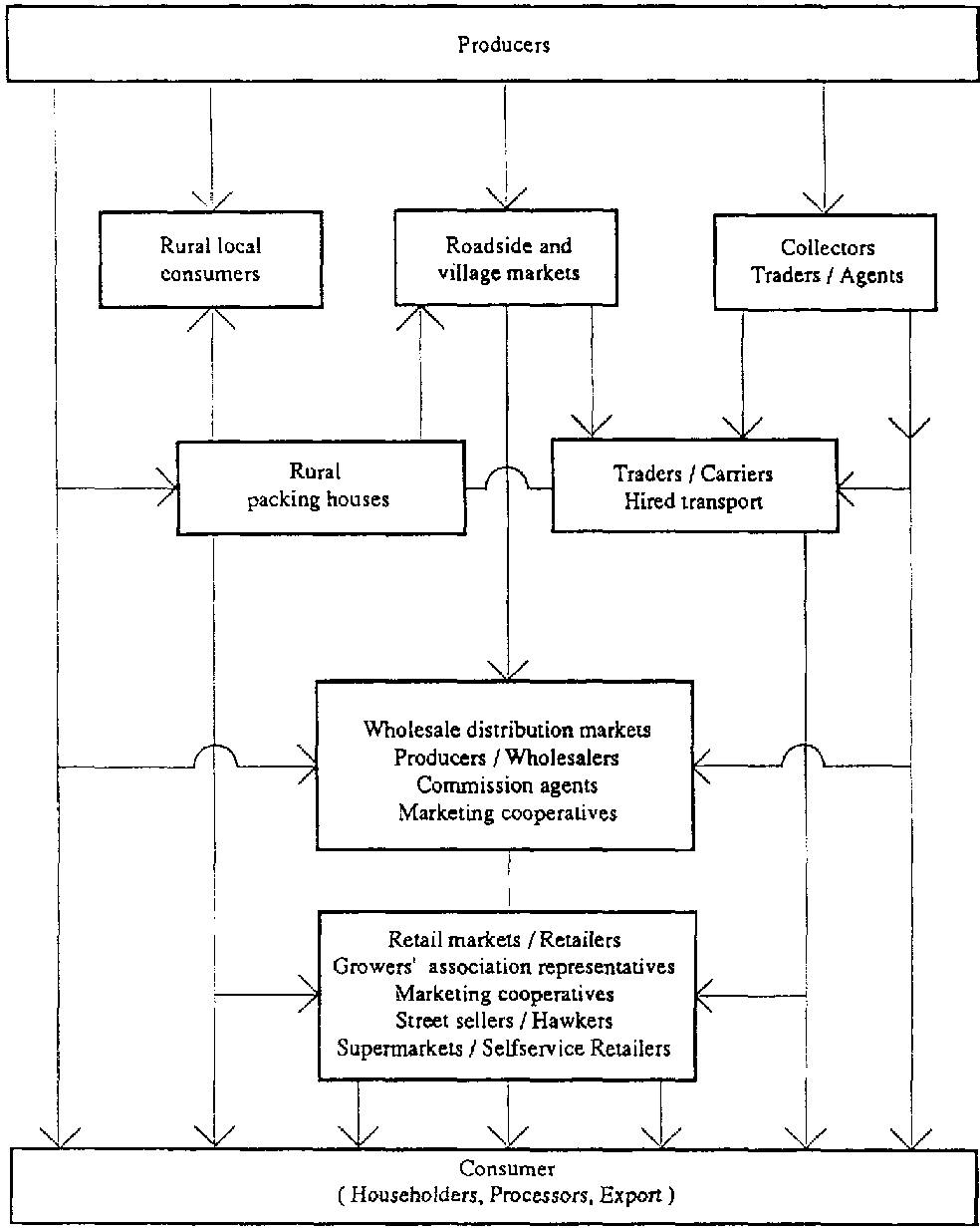 Figure 1. Principal marketing and distribution channels for fresh fruit, vegetables and root crops