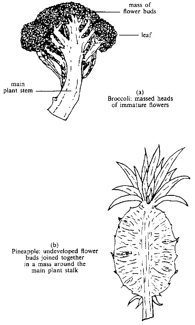 | Massed flower heads | Broccoli, cauliflower | (Figure 4.2a) |