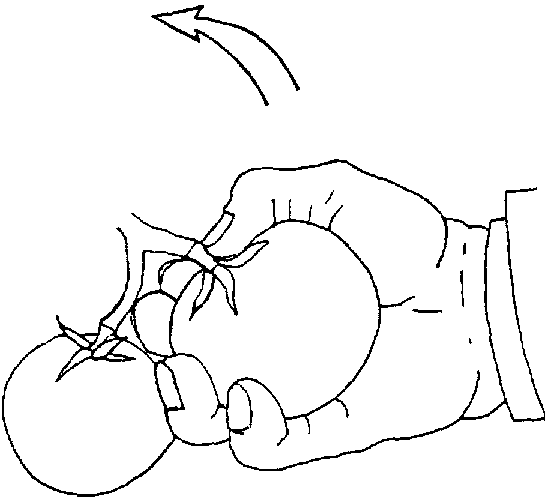 Figure 5.3 A natural break-point occurs on many mature fruits at the junction of stem and stalk. At harvest time. thumb pressure applied there should be accompanied by lifting, pulling and turning the fruit