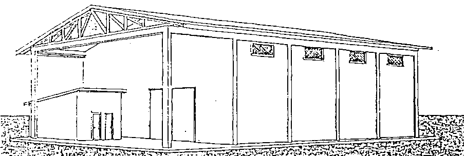 In order to make maximum use of the storage space inside a warehouse, it is often advantageous to extend the roof at one end (Figure 6.18. Standard warehouse with a working area at one end.), or along one side, to provide a covered working area for the handling of stocks being received or despatched.