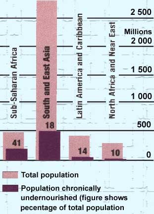 Estimate of chronically undernourished in developing regions 1990-92