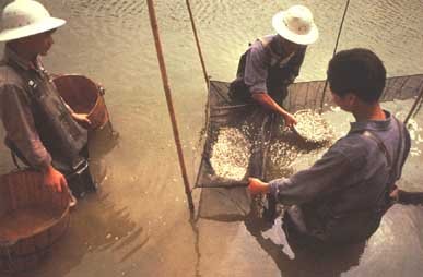 | About half of the annual harvest of shrimp - a high value export product comes from aquaculture. Progress in the production of shrimp over the past 10 years has been largely responsible for a fourfold increase in the annual harvest of crustaceans. |