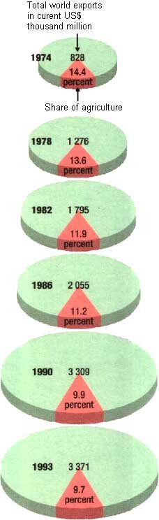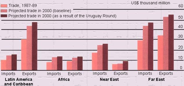 FAO provided technical support for the latest set of GATT negotiations, the Uruguay Round, which was successfully completed in April 1994 and was the first to include agriculture significantly. As a result of the negotiations, GATT has now become the World Trade Organization (WTO), set up to monitor and regulate international trade, and to oversee the implementation of the Uruguay Round agreements. Although the reductions in subsidies and trade barriers in agriculture are small, they are expected to add over US$ 9 000 million to the value of developing countries' agricultural exports by the year 2000.
