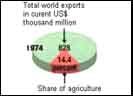 Share of agricultural production in GDP and percentage share of merchandise exports