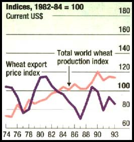 Wheat is the major commodity provided as food aid. In 1992/93, for example, wheat accounted for just over half of the 15 200 tonnes of the cereal shipped as food aid to developing countries.