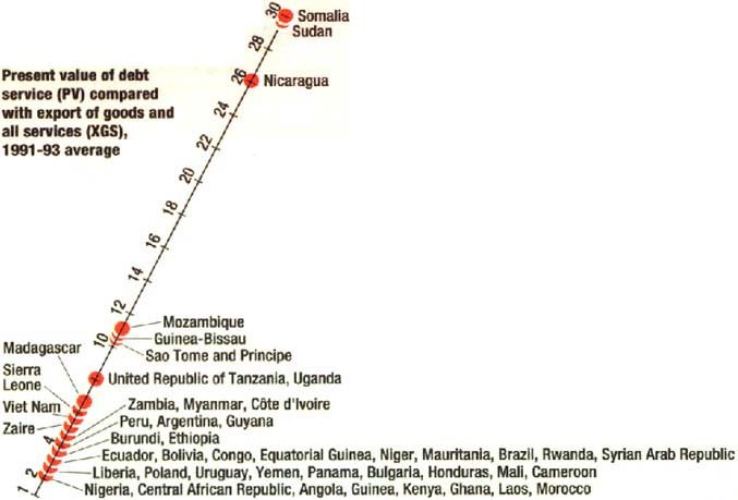 Many developing countries are so indebted that their total annual repayments outstrip foreign exchange earnings up to 30 times over.