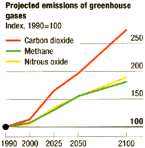 Projected emissions of greenhouse gases
