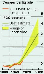 Potential changes in surface temperature according to the Intergovernmental Panel on Climate Change (IPCC)