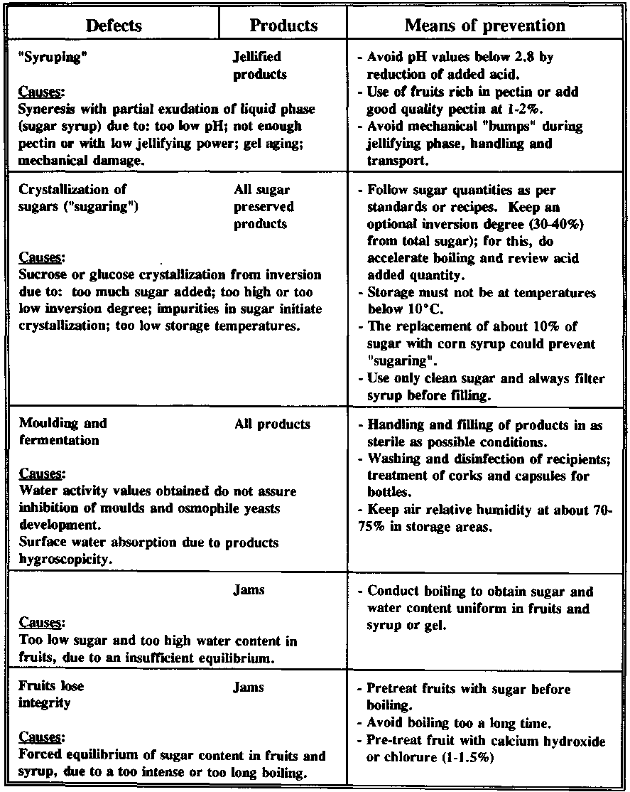 TABLE 8.6.3 Quality in fruit products preserved with sugar and means to prevent them