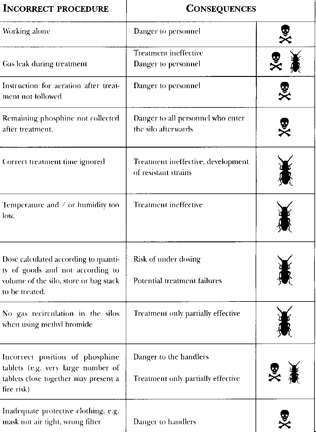 TABLE 4 - The consequences of incorrect procedures when using fumigants