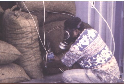 Figure 8. An airtight mask as well as goggles must be worn when handling methyl bromide (Photo MCP).