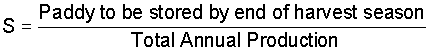 The quantity of paddy to be stored at end of harvest season is a function of the rates of harvesting, milling and sales during a 4-month harvesting season.